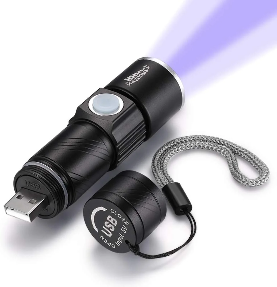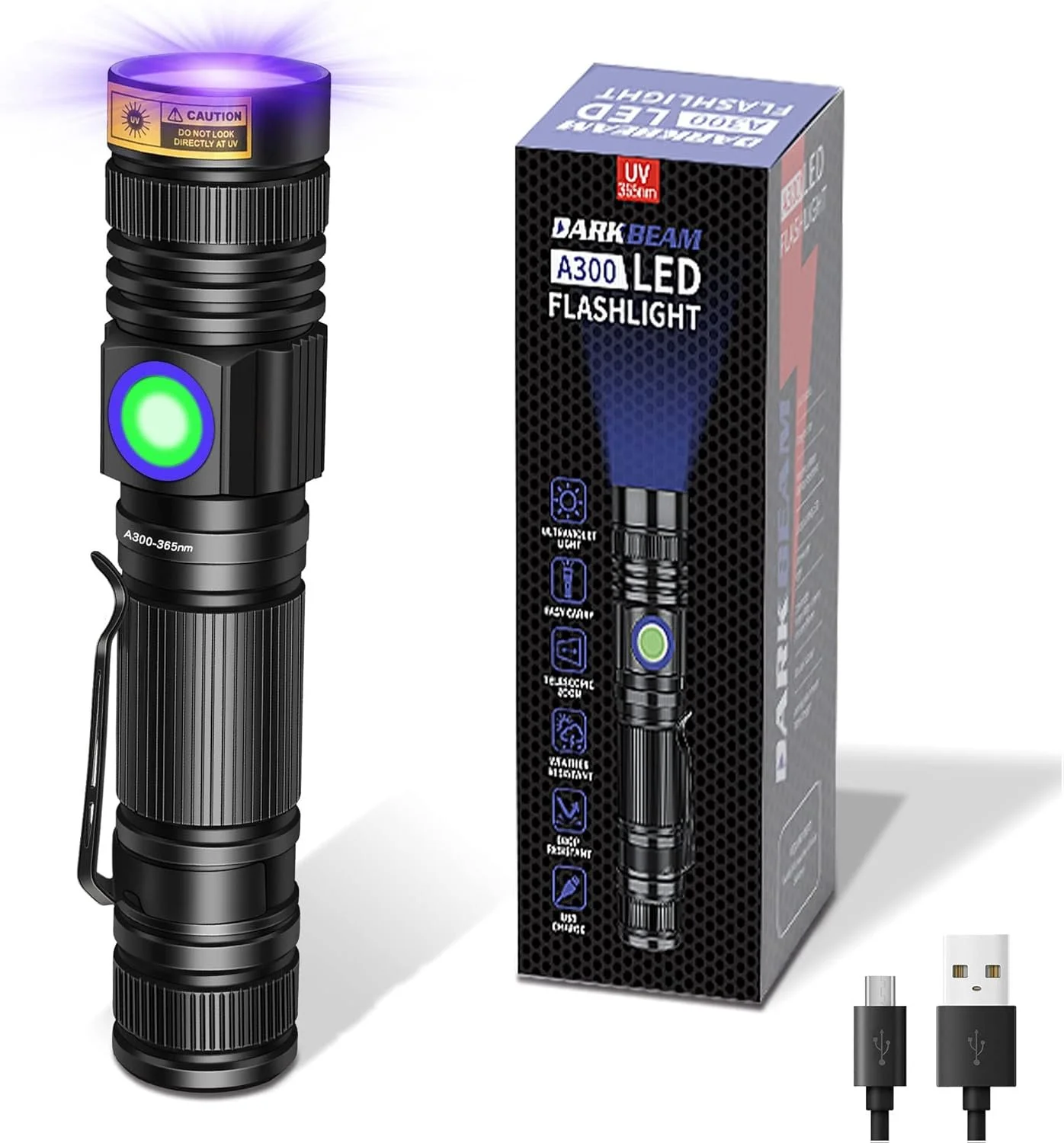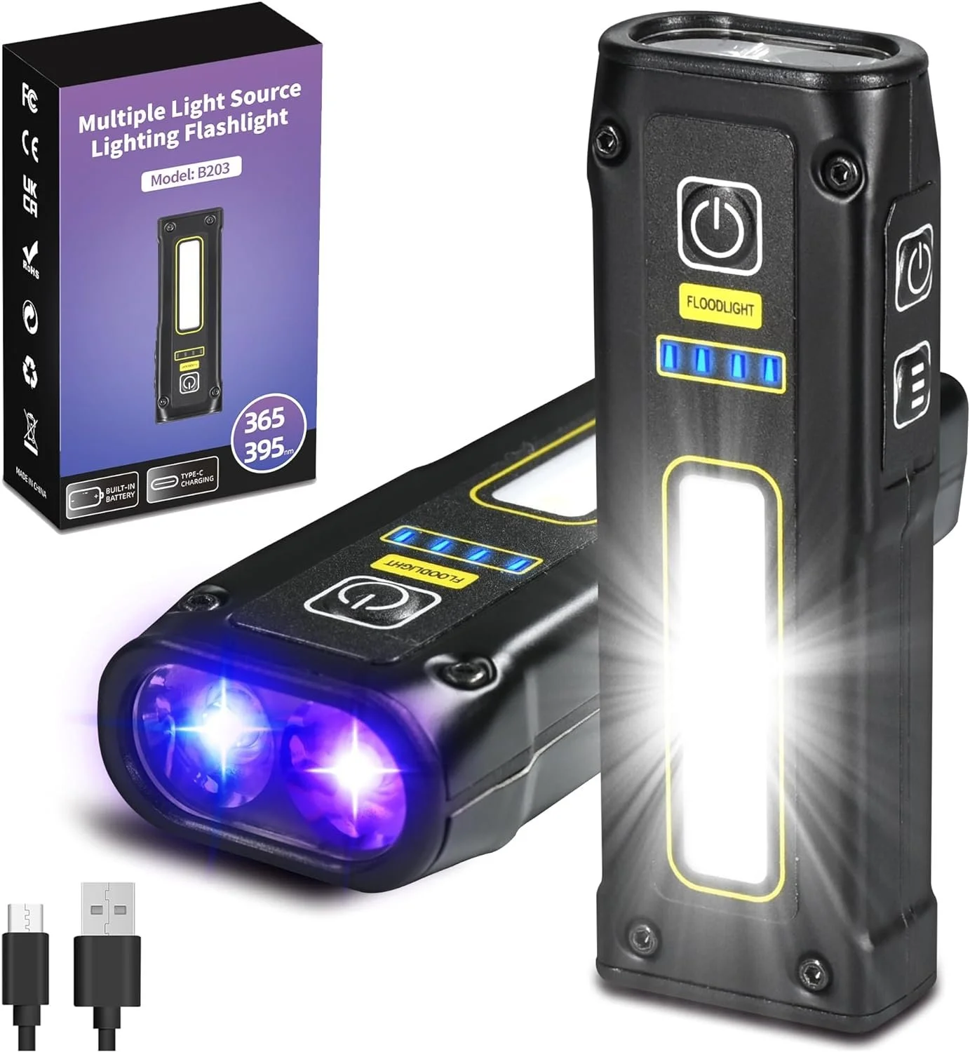 DUAL UV LED Flashlight 365+395 Blacklight, USB C Rechargeable, Mini Magnetic COB Red Light - Emergency Power battery backup